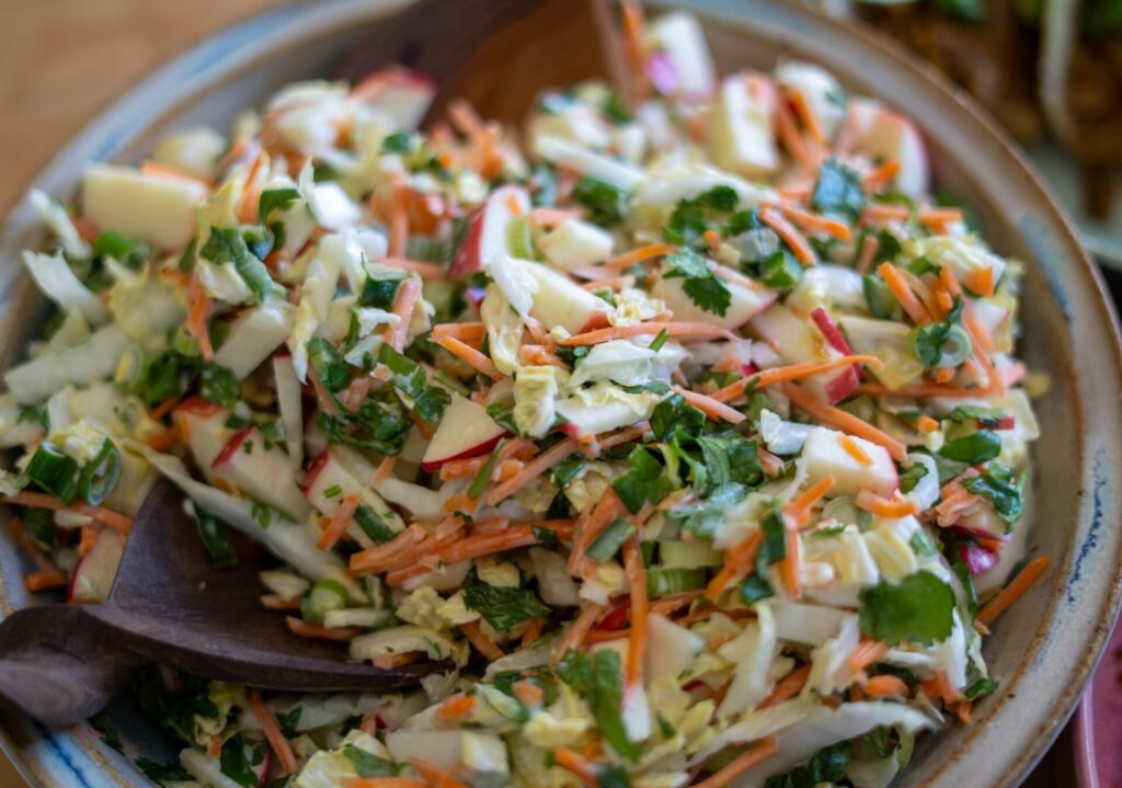 - ½ nappa cabbage – cored and finely sliced