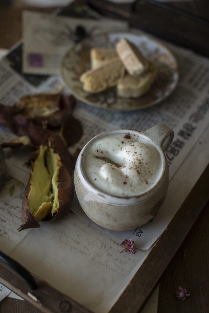 Place your milk in a microwave-safe container and microwave it on high for 90 seconds. It should be nice and hot but not boiling as you don’t want the milk to scald. Divide the sweet potato puree between two mugs, followed by the warm milk. Stir, then dust with additional cinnamon before serving.